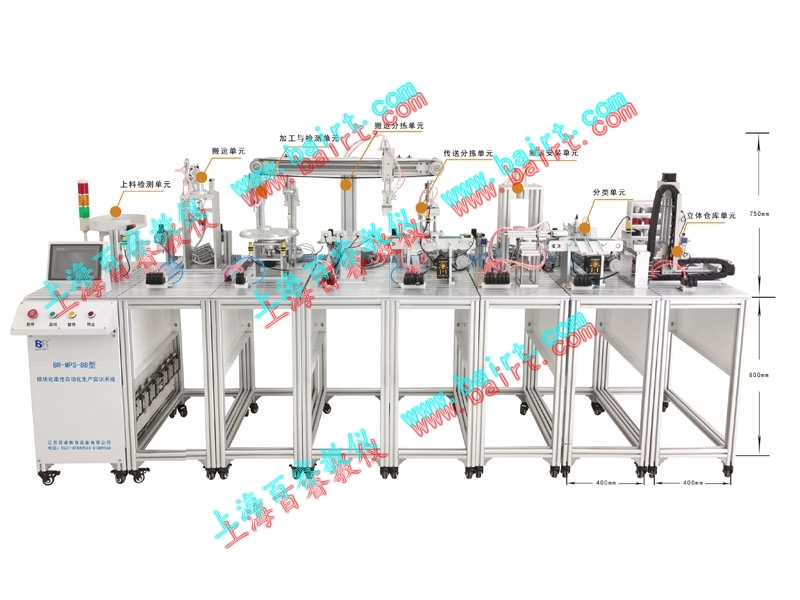 BR-MPS-8B模塊化柔性自動化生產(chǎn)實訓(xùn)系統(tǒng)在MPS-8A基礎(chǔ)上,進行了調(diào)整,將八個工作站統(tǒng)一用一套PLC控制系統(tǒng)進行控制,突出了可編程控制器在機電一體化的大環(huán)境下的優(yōu)化控制功能,工作站點達到8個之多,進一步加深了對控制要求。BR-MPS-8B綜合了實際工業(yè)生產(chǎn)中大量應(yīng)用到的復(fù)雜控制過程的教學(xué)培訓(xùn)裝置,根據(jù)現(xiàn)代生產(chǎn)物流系統(tǒng)發(fā)展和未來趨勢而專門設(shè)計,它以培養(yǎng)學(xué)生專業(yè)知識應(yīng)用能力、綜合實踐能力、創(chuàng)新能力為主要目標。
